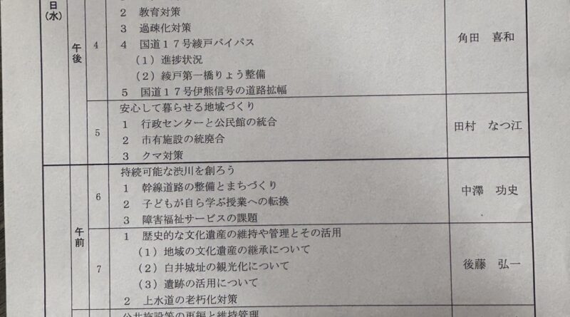 その間、11日、12日、16日の3日間に渡り一般質問が行われます。