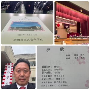 午前は中学校入学式、午後は小学校入学式に参列しました。